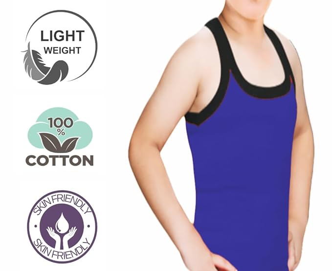 100% cotton gym vest for kids with superior comfort and breathability. Ultra-soft fabric for a luxurious feel. Constructed with premium quality yarn for added durability. High sweat absorbency to keep you feeling fresh and dry. Long-lasting whiteness Fancy Stylish Colorful gym vest made with 100% pure Cotton Easy Care: Designed for convenience, our KID's gym vest is easy to care for and maintains its quality wash after wash. Anti-Itiching Fabric